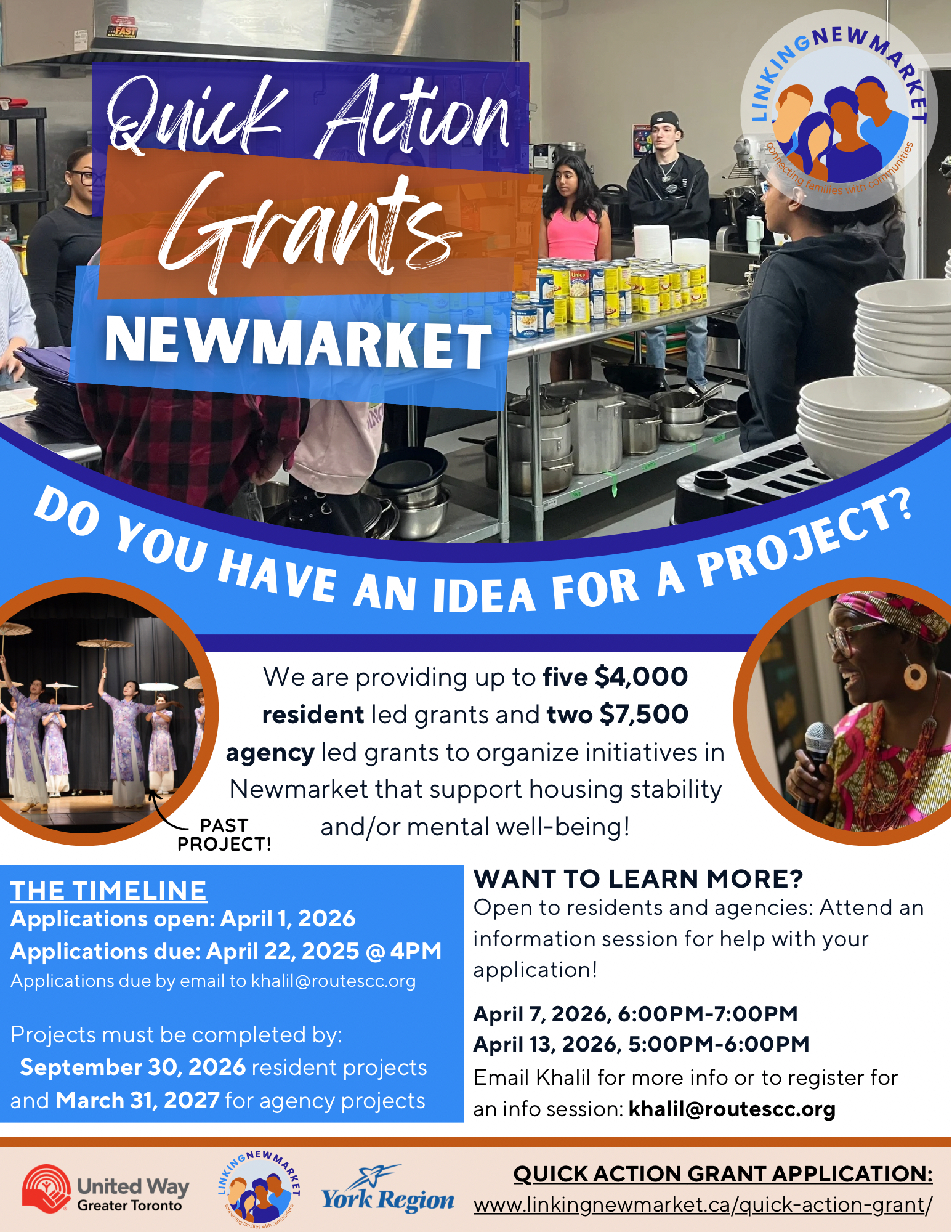 For more information on any of the Quick Action Grants listed above or Central Newmarket Community Action Table initiatives, please visit linkingnewmarket.ca, @Linkingnewmarket on social media or contact, khalil@routescc.org (Community Engagement Lead) or sandra@routescc.org (Community Engagement Manager)